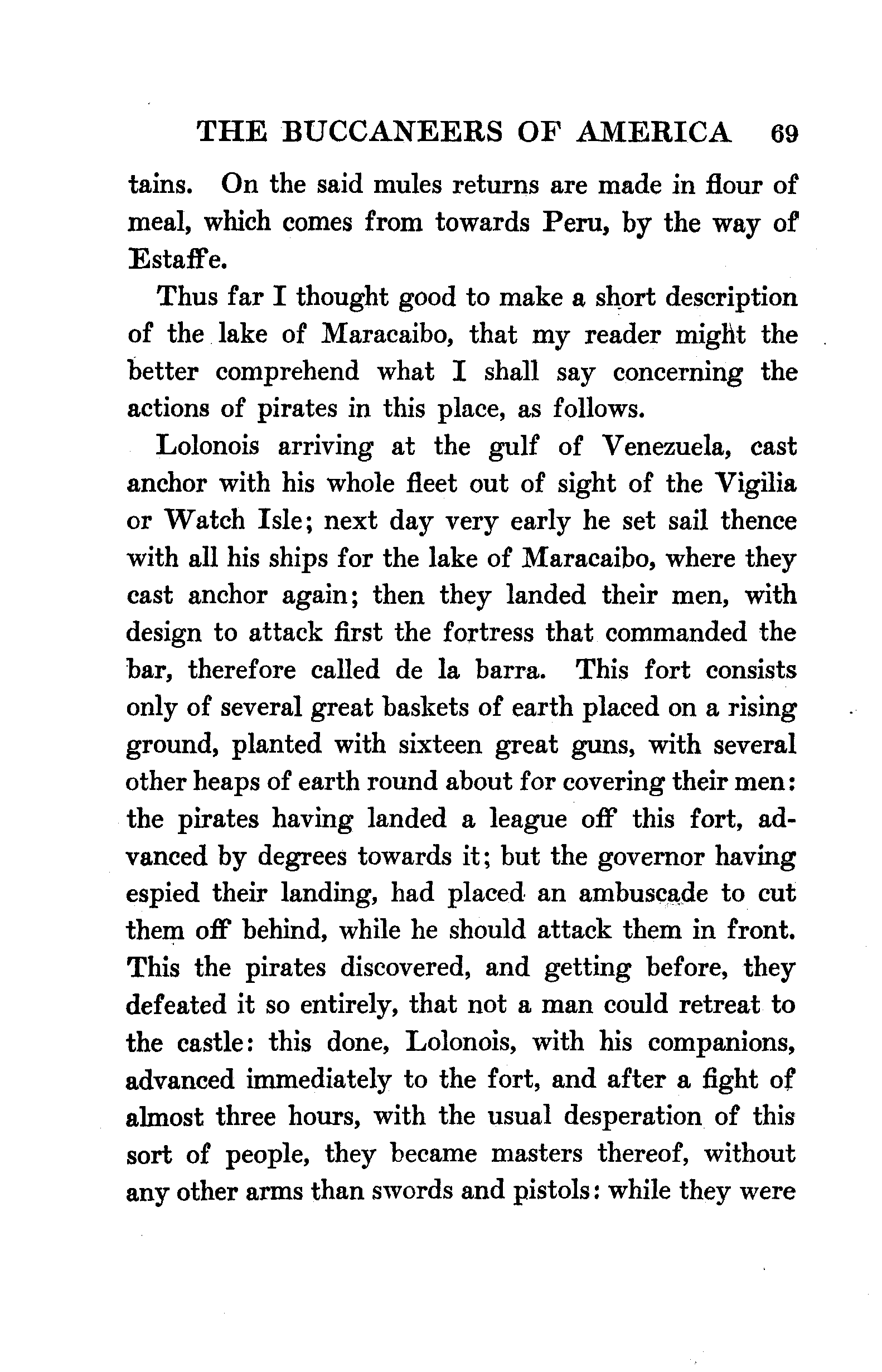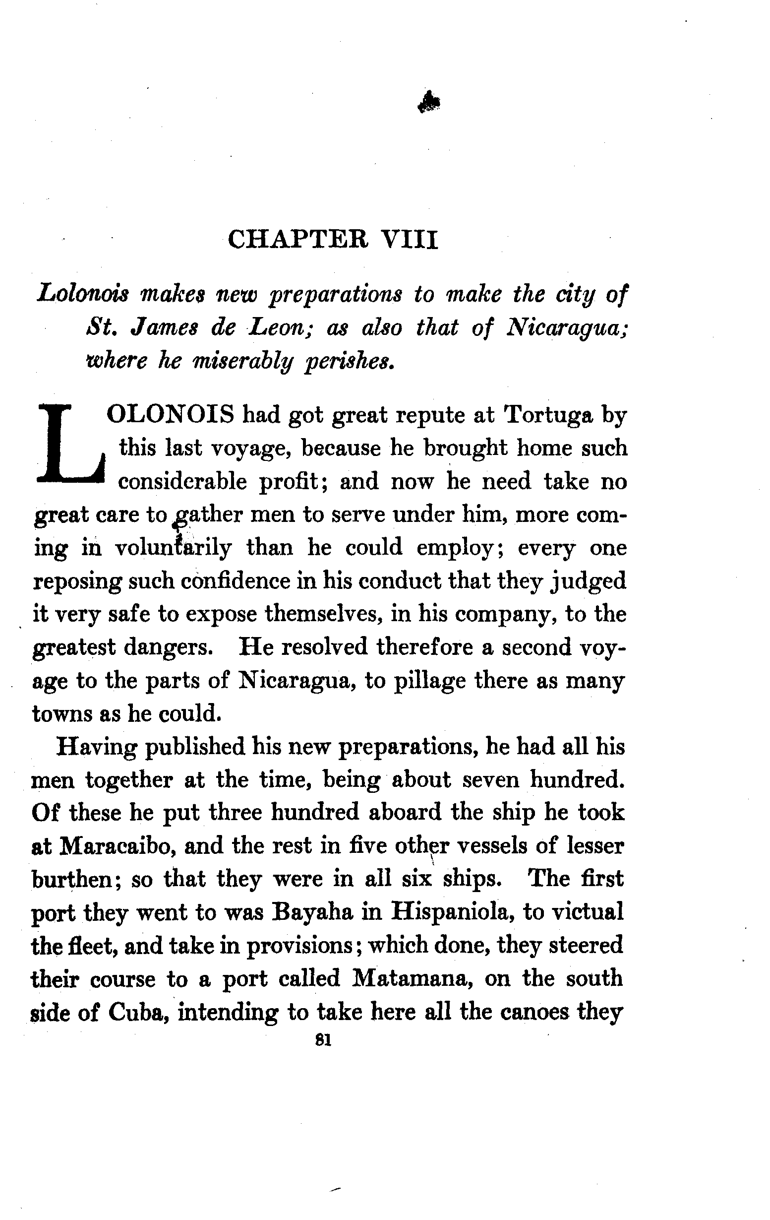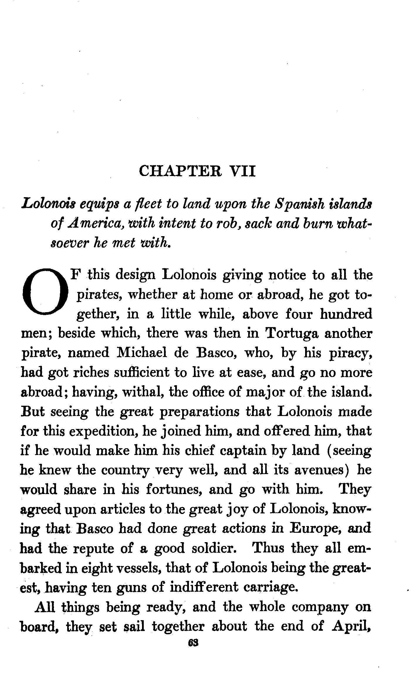 | Lolonois equips a fleet to land upon the Spanish islands of America, with intent to rob, sack, and burn whatsoever he met with | 63 |