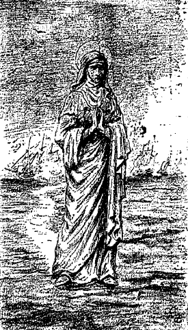 Un brick de Saint-Malo qui faisait voile vers les Indes aperçut un jour un objet volumineux qui flottait sur l'eau. Une chaloupe fut le chercher; c'était une caisse cerclée de fer dans laquelle se trouvait une statue de la Vierge, et l'équipage fut bien étonné de voir qu'une telle masse avait pu flotter sur l'eau. Le capitaine fit disposer une place convenable dans l'entrepont pour y placer la statue, faisant le vœu de l'offrir à la ville de Saint-Malo, aussitôt après son retour. Il voulut alors continuer sa route, mais il eut à subir une telle série d'ouragans extraordinaires, qu'il finit par comprendre que la Madone de pierre ne voulait pas aller aux Indes et avait hâte de se trouver à Saint-Malo. Aussitôt le beau brick vira de bord, bout pour bout, et grand vent arrière, fila vers le Clos-Poulet où il arrive après une très rapide traversée.[221]