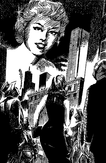 Tom Blacker walked the carpeted floor of his office, chewing on his lower lip, and cursing the feeble imaginations of Ostreich and the rest of them. When his temper had cooled, he got sober thoughts of indictments, and law suits, and unemployment. With a sigh, he contacted the engineer on the roof of the Cannon Building. Then he went to the window, and watched Monica's thousand-foot face fade gradually out of sight.