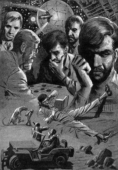 Dwight Kroger, the biochemist, is rather old to take the "rigors of the journey," as he puts it, but the government had a choice between sending a green scientist who could stand the trip or an accomplished man who would probably not survive, so they picked Kroger. We've blasted off, though, and he's still with us. He looks a damn sight better than I feel. He's kind of balding, and very iron-gray-haired and skinny, but his skin is tan as an Indian's, and right now he's telling jokes in the washroom with the co-pilot.