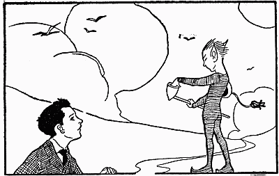 "Can't you see a fellow is sleepy after[13] reading so long a time? I didn't think you were coming out of the book to speak to me, you know."
