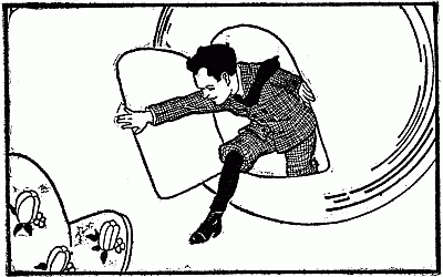 Sure enough, he could just hear the words, "Hold on tight to one side, and brace your feet," and the next moment he perceived that the cake was in motion.[33]