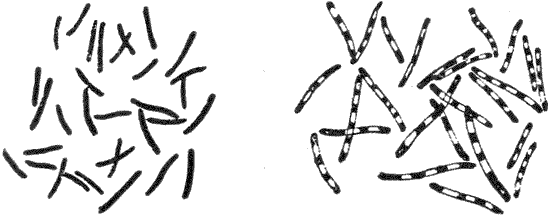 [8]These bacilli are infinitely minute, they are 2⁄1000 to 8⁄1000 millimeters long, and about 5⁄100000 millimeters in width. Therefore it is absolutely impossible to recognize them with the naked eye. Generally they are somewhat bent, sometimes slightly nicked at one end.