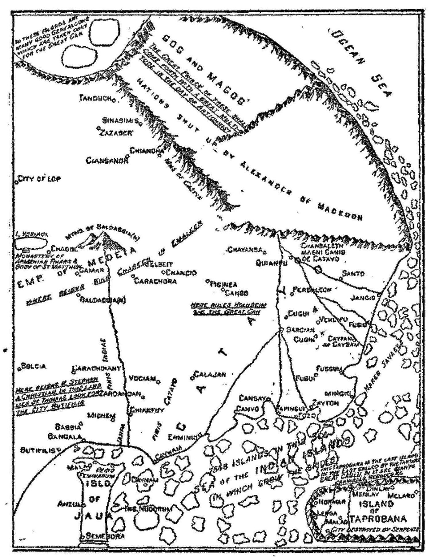 Footnote 570: For an account of Ptolemy's almost purely hypothetical and curiously distorted notions about southeastern Asia, see Bunbury's History of Ancient Geography, vol. ii. pp. 604-608.[Back to Main Text]