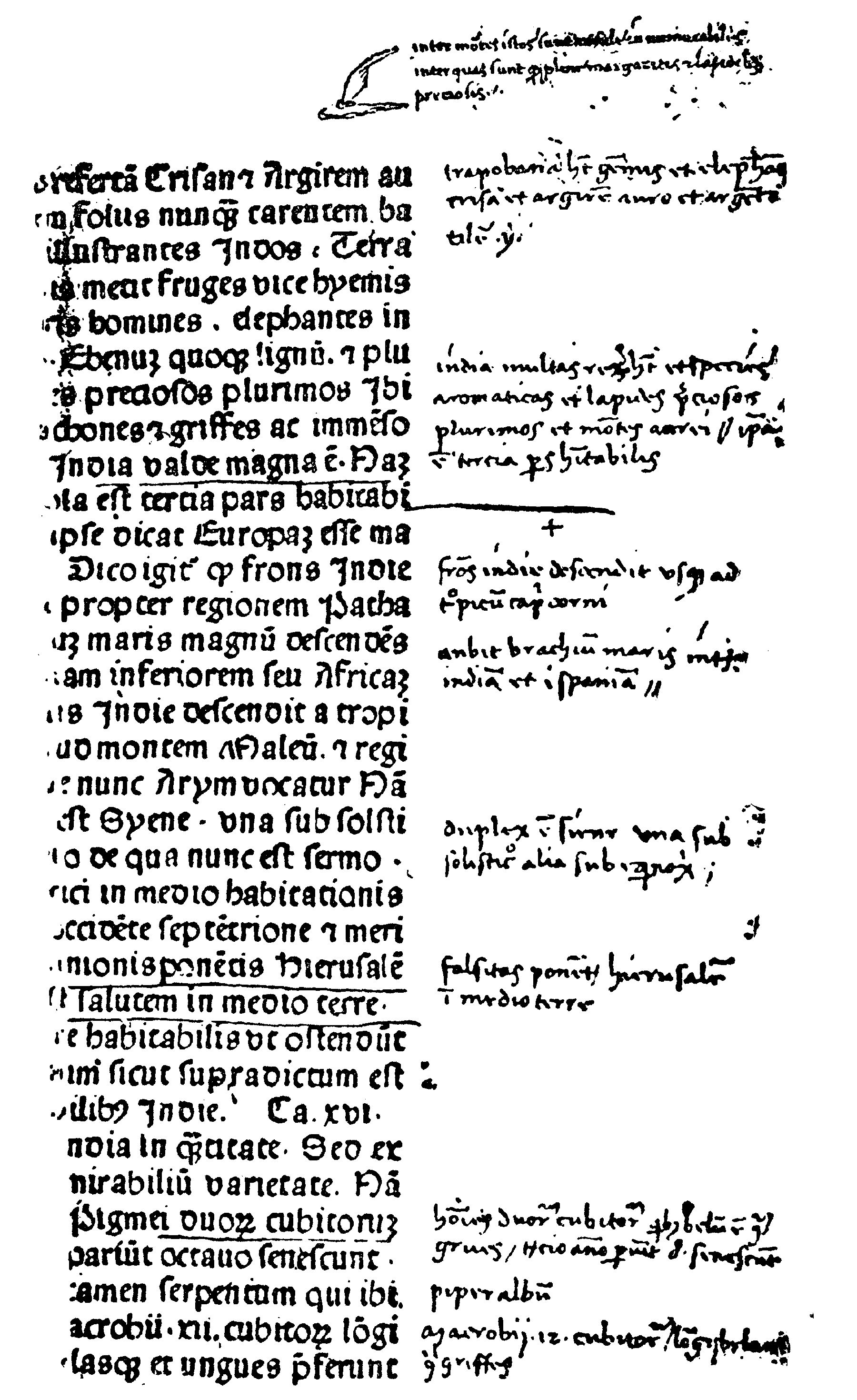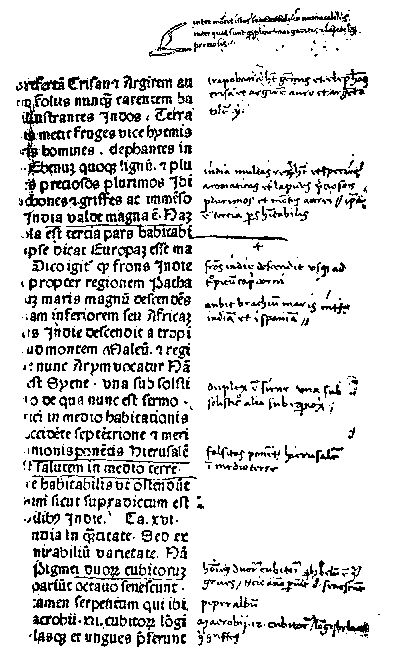 It is interesting on many accounts to see the first voyage of Vespucius thus elucidated, though it had no connection with the application of his name by Waldseemüller to an entirely different region from any that was visited upon that voyage. (p. xvi) The real significance of the third voyage of Vespucius, in connection with the naming of America, is now set forth, I believe, for the first time in the light thrown upon the subject by the opinions of Ptolemy and Mela. Neither Humboldt nor Major nor Harrisse nor Varnhagen seems to have had a firm grasp of what was in Waldseemüller's mind when he wrote the passage photographed below in vol. ii. p. 136 of this work. It is only when we keep the Greek and Roman theories in the foreground and unflinchingly bar out that intrusive modern atlas, that we realize what the Freiburg geographer meant and why Ferdinand Columbus was not in the least shocked or surprised.