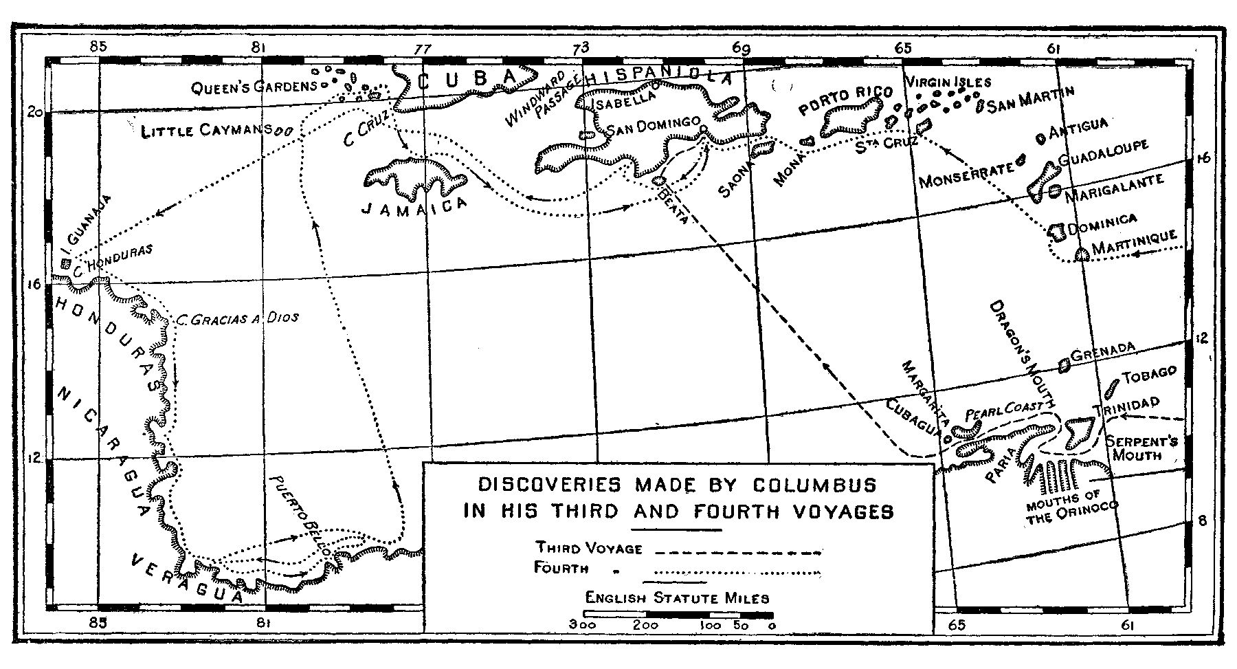 Footnote 609: In the next chapter I shall give some reasons for supposing that the Admiral had learned the existence of the Yucatan channel from the pilot Ledesma, coupled with information which made it unlikely that a passage into the Indian ocean would be found that way. See below, vol. ii. p. 92.[Back to Main Text]