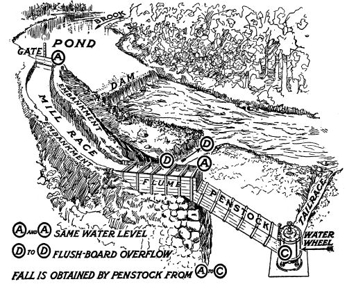 The United States government geological survey engineers recently made an estimate of the waterfalls capable of developing 1,000 horsepower and over, that are running to waste, unused, in this country. They estimated that there is available, every second of the day and night, some 30,000,000 horsepower, in dry weather—and twice this during the eight wet months of the year. The waterfall capable of giving up 1,000 horsepower in energy is not the subject of these chapters. It is the small streams—the brooks, the creeks, the rivulets—which feed the 1,000 horsepower torrents, make them possible, that are of interest to the farmer. These small streams thread every township, every county, seeking the easiest way to the main valleys where they come together in great rivers.