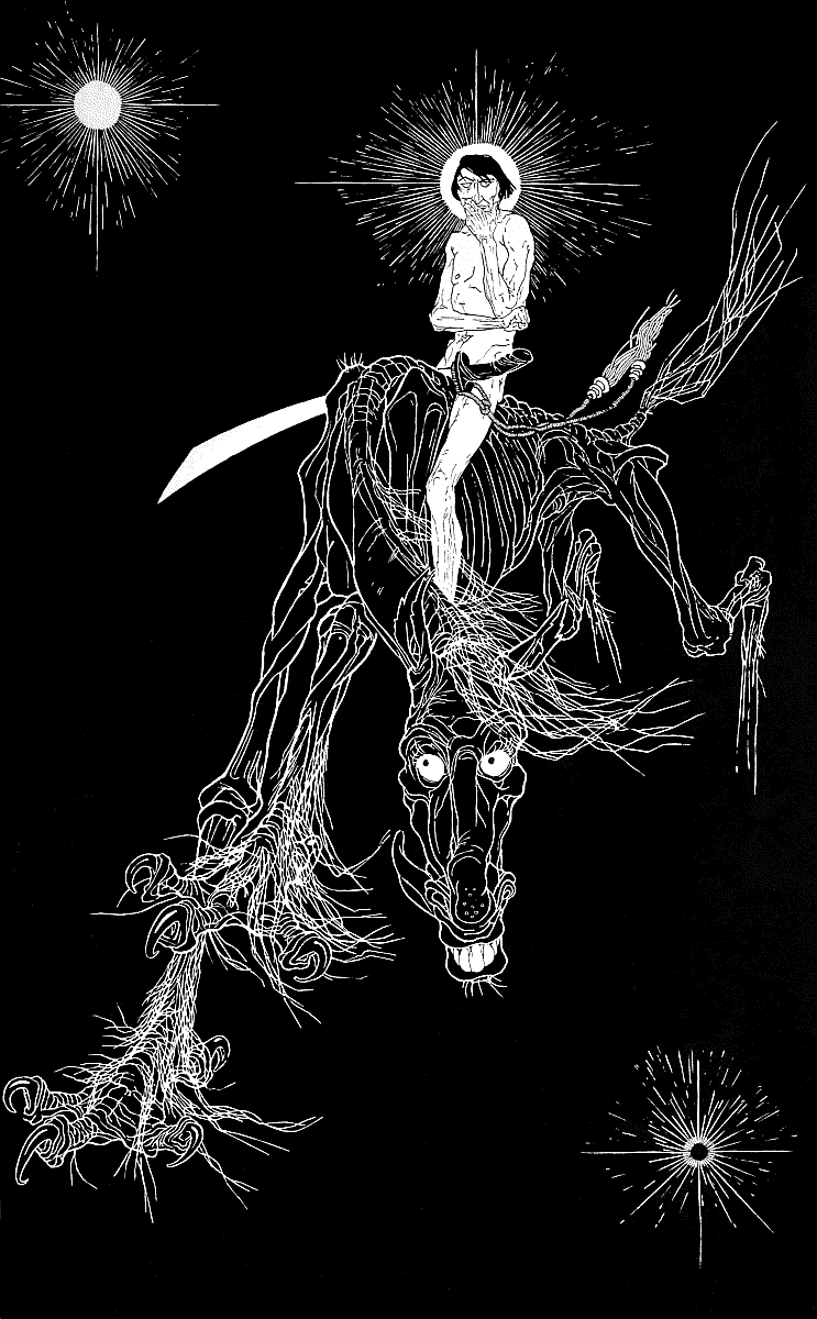 “‘But you remained and grew more dolorous. Then you are something else. I suspect you of being the adroit ambassador the madmen have sent into my heaven to plead their cause. Yet why do you not plead? As an ambassador you are a tongue-tied, sniveling idiot. Therefore again, you escape logic. And without logic my madness becomes slyly incomprehensible to me.
