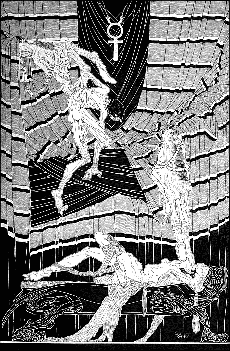 “Then, like a victory too long withheld, it came to me. He was mad. Goliath, my servant, was mad. But more than that—a telepathic madness. I have elaborated my understanding since. Goliath suffers from a contagion. His constant attendance upon me has proved fatal to his stupidity. His senses are the victims of my puppets. He has entered my world and my madness creates for him, as it does for me, shadows that deceive him. But there is no Mallare in him. Unlike me, he does not sit in amused judgment upon himself.