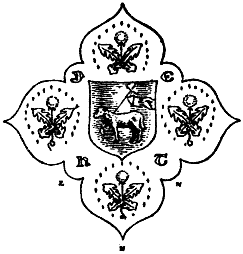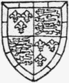 The front of the gate is richly decorated with heraldic devices, full of historical meaning and associations. The arms are those of the foundress; the shield, France[Pg 2] (ancient) and England quarterly, was the royal shield of the period; the bordure, gobonny argent and azure (the argent in the upper dexter compartment), was the "difference" of the Beauforts, and is only slightly indicated. The supporters, two antelopes, come from Henry VI. There is no crest above the shield, and heraldic rules are against its use by a lady, but on her seal the Lady Margaret used the Beaufort arms as above ensigned, with a coronet of roses and fleur-de-lis, out of which issues an eagle, displayed or; and this device of coat and crest is used by the College. The arms on the gate are surrounded by badges, the Portcullis of the Beauforts, the Tudor, or Union, rose, each surmounted by a crown. Besides these we have daisies (marguerites), the badge of the Lady Margaret, and some flowers, which are not so easily identified. Certain vestments and embroideries, which belonged to the Lady Margaret, of which a list has been preserved, are described as "garnishede with sophanyes and my ladyes poisy," or, "with rede roses and syphanyes." The sophanye was an old English name for the Christmas rose, and there seems little doubt that these flowers on the gate are meant for Christmas roses. The carving on the right, under the portcullis, where these emblems seem to be growing out of something resembling a masonic apron, is very curious.
