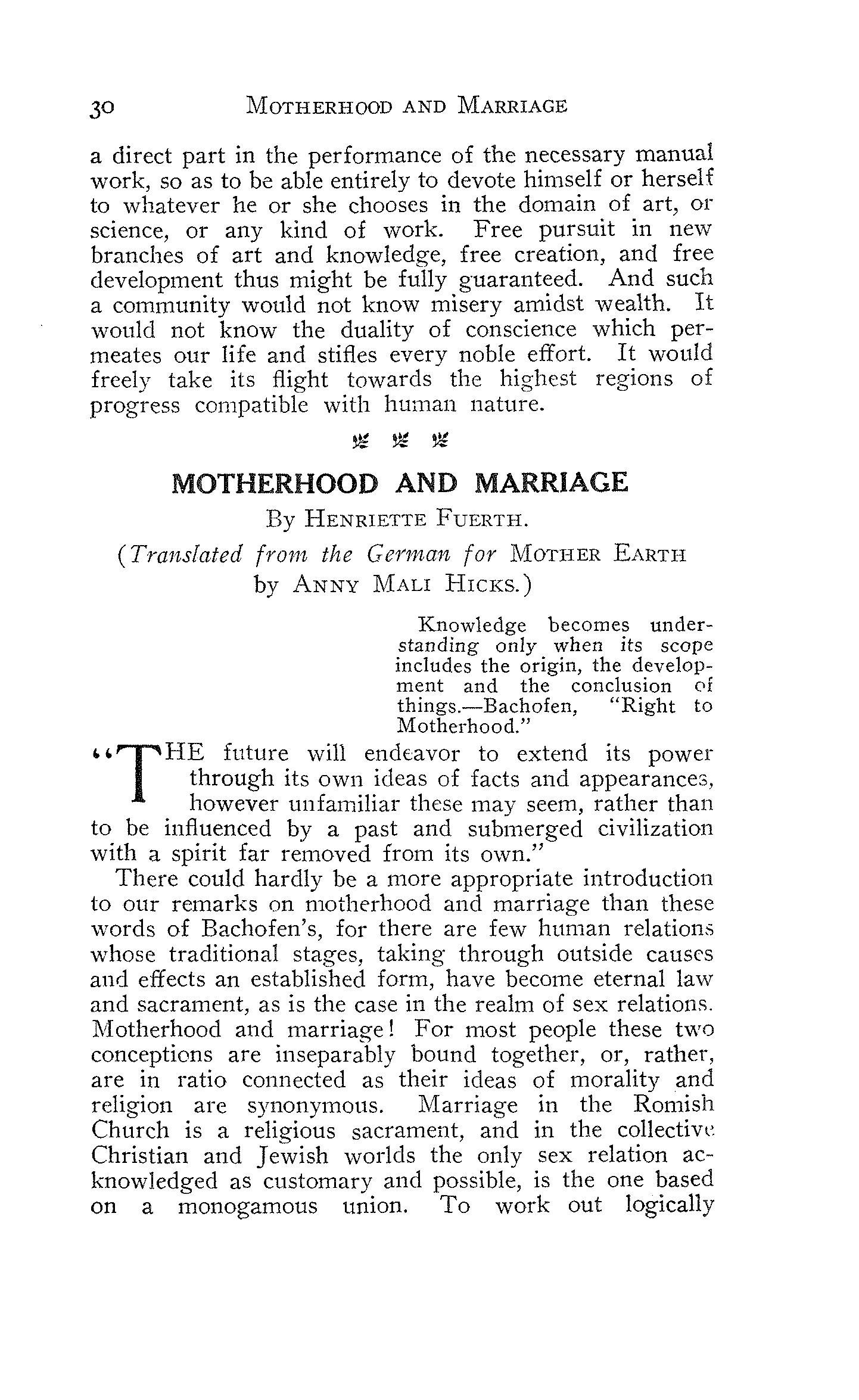 | Motherhood and Marriage HENRIETTE FUERTH | 30 |