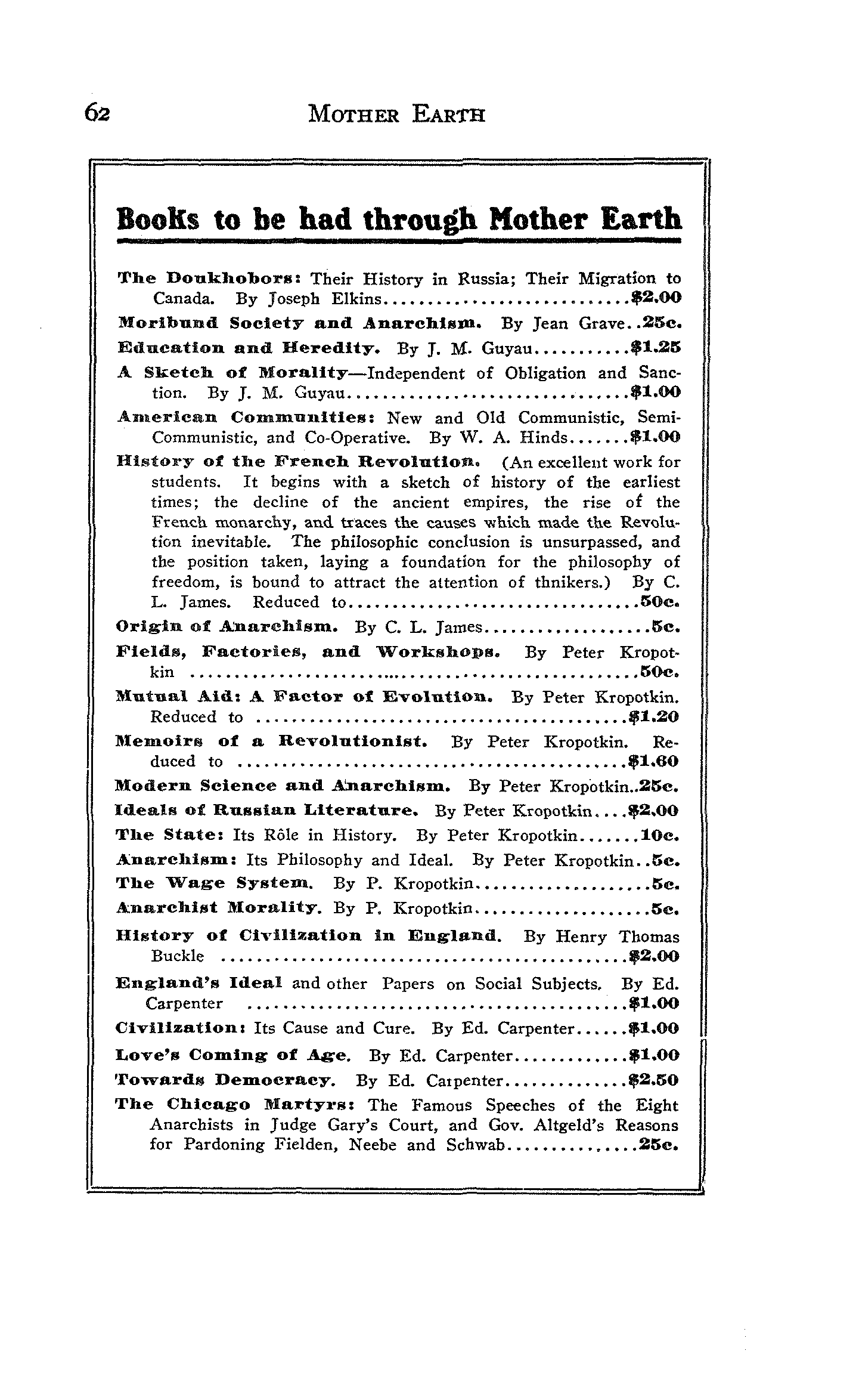 Modern Science and Anarchism. By Peter Kropotkin . . 25c.