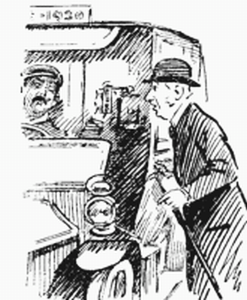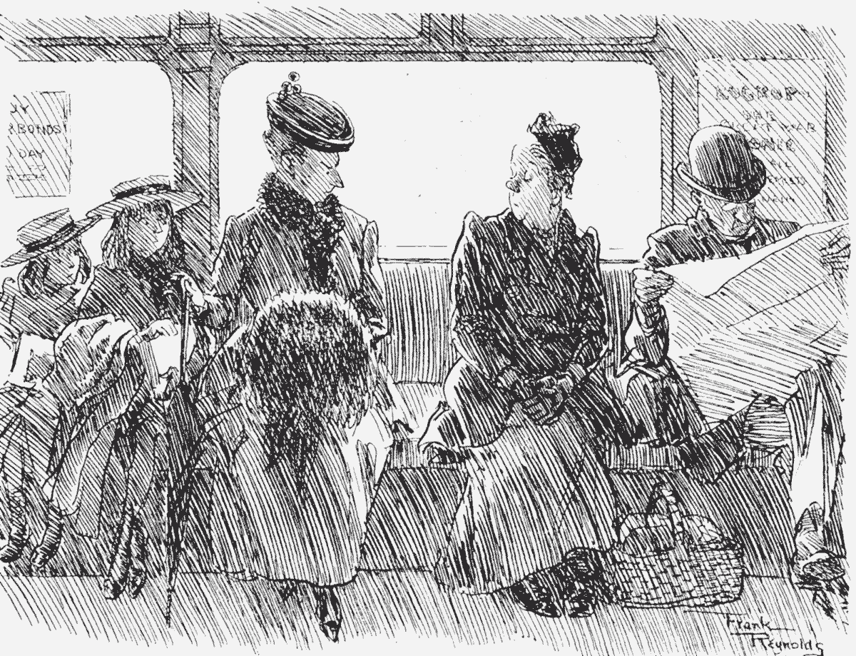 As we trudge homeward under the star-lit skies all our racy anecdotes are of the fine fast runs we have had with the 8.52, the brave swinging of the tail carriage, the heavy work over the points, the check and find again at East Croydon main.... Those who arrive early at the meet in the morning (but, as I have hinted, I am not one of these) stroll about the platform, I am told, talking of the rare old times when the 8.52 used to be the 8.51, pulling out their watches every now and then and saying to the station-master, "She's twenty-five seconds late," for all season ticket-holders have special permission from the railway company to put trains into the feminine gender. This is a slight compensation for having to pay again when they are challenged and can only pull out a complimentary pass to the Chrysanthemum Show.