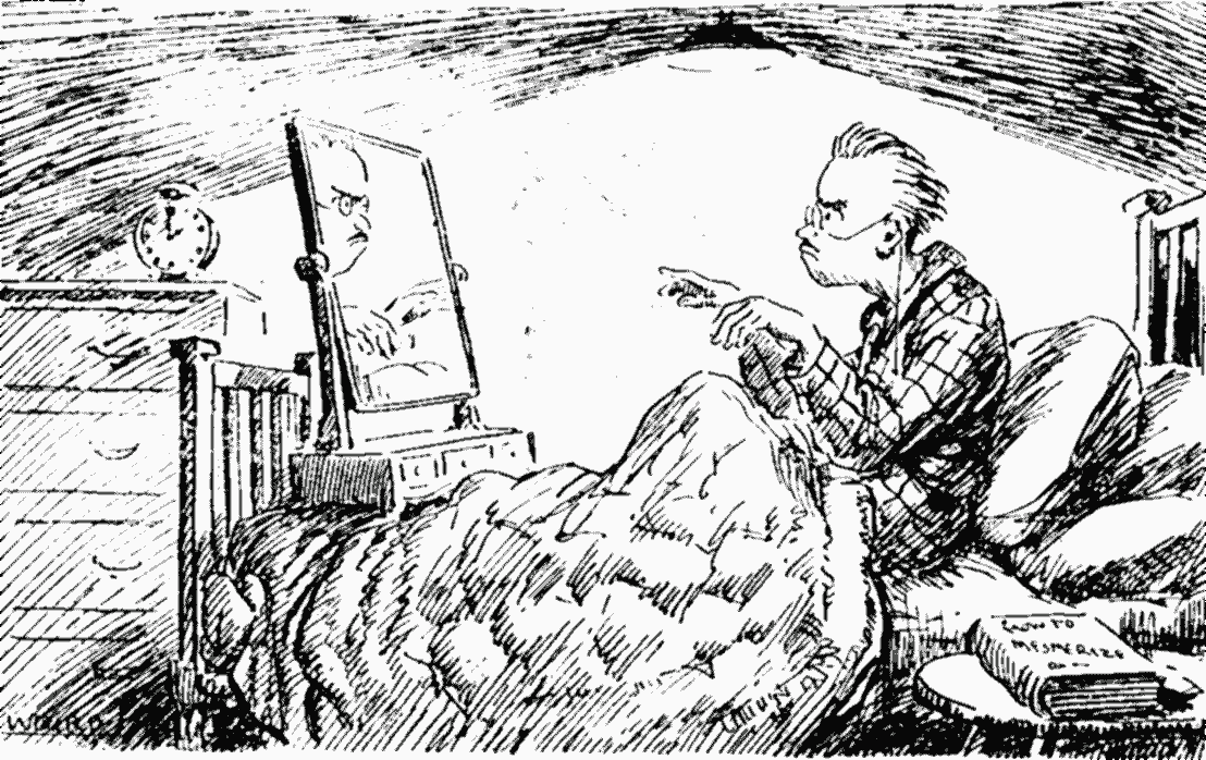 Wrote a wonderful article on the importance of dressing up some one to look like Hindenburg and dropping him at night by parachute from an aeroplane into the German lines near Head-Quarters. It would have to be a biggish man who can speak German well—Mr. Chesterton perhaps, but I have never met Mr. Chesterton, as he seems never to lunch or dine at the Ritz; or even Lord Haldane. Once safely landed (my article goes on to explain) he would make his way to German H. Q., being mistaken for the real Hindenburg, kill him and then issue orders to the Army which would quickly put the Germans in our power. Strange that no one else has thought of this.