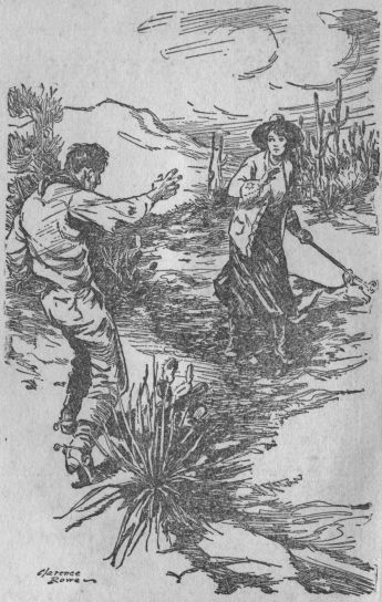Jack Flatray had met O’Connor at his own office and the two had come down to the station on the off chance that MacQueen might try to make his getaway from Mesa in some disguise. But as soon as he saw Melissy the sheriff had eyes for nobody else except the girl he loved. One sleeve of his coat was empty, and his shoulder was bandaged. He looked very tired and drawn; for he had ridden hard more than sixteen hours with a painful wound. But the moment his gaze met hers she knew that his thoughts were all for her and her trouble.