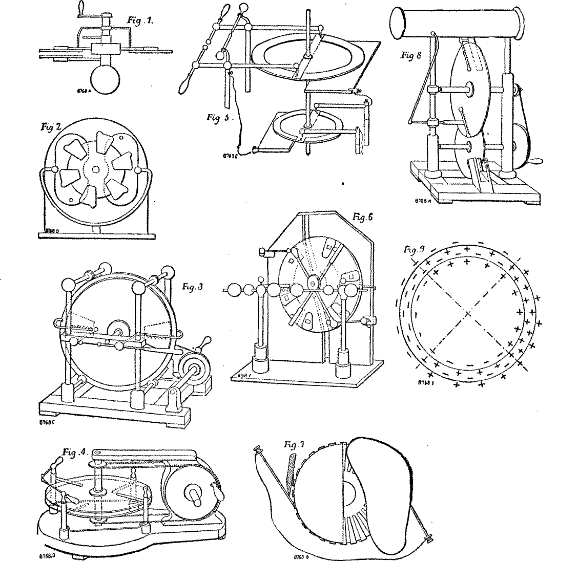 In 1865 the subject was taken up with vigor in Germany by Toepler, Holtz, and other eminent men. The most prominent of the machines made by them are figured in the diagrams (Figs. 3 to 6), but time will not admit of my giving an explanation of the many points of interest in them; it being my wish to show you at work such of the machines as I may be able, and to make some observations upon them.