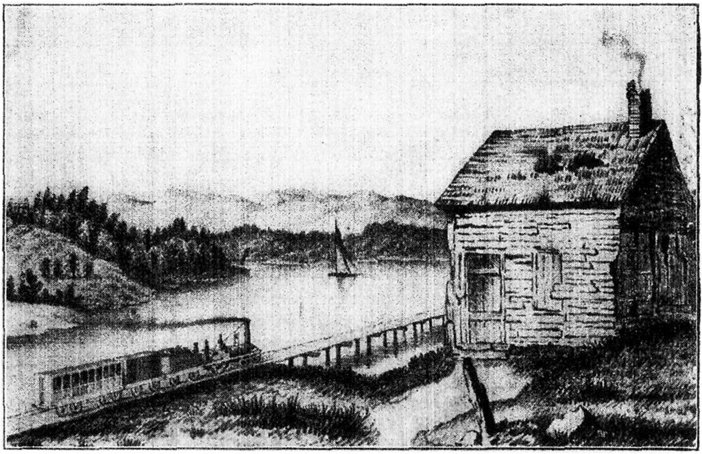 About the time of the Revolutionary War, a Swede named Jeremiah Dobbs, established a ferry here connecting with the northern end of the Palisades (visible on the left across the river). Originally only a dugout or skiff, it was the first ferry north of Manhattan, and was kept up by the Dobbs family for a century. In times past the residents have often tried to change the name of the town to something more "distinguished," but the old name could not be displaced.