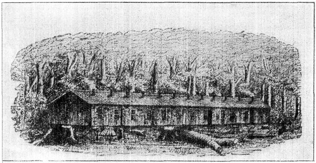 There are residents of Chicago still living who can remember the early days when the first village school stood on the ground now occupied by the Boston Store at Dearborn and Madison Sts. Some even insist they remember when wolves were trapped on the site of the present Tribune building. In the early period the streets of the little town were thick with mire in the rainy season, and it is said that signs were placed at appropriate points with inscriptions such as "No Bottom Here," "Stage Dropped Here," etc. The first improvement of note in Chicago was an inclined plank road in Lake St., arranged with a gutter in the center for drainage. It was the only safe route over which stage coaches from the west could enter the town.