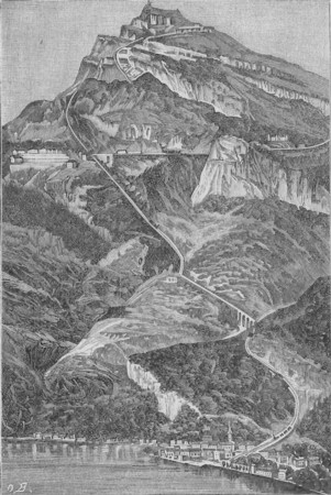 Rigin juurella kiertelee monimutkainen, kaunis Vierwaldstätter-järvi. Tänne ylös näyttää se kapealta, melkein kuin olisi se vaan suurempi joki, vaikka sillä muutamin paikoin on 3-4 virstan leveys. Matkustajahöyrylaivat, jotka kulkevat sen pinnalla, näyttävät tänne ylös mitättömän pieniltä. Näkyypä eräs soutuvenhekin ja siinä soutaja. Voipi erottaa soutajan tekevän soutuliikkeitä, mutta venhe näyttää pysyvän aivan paikoillaan.