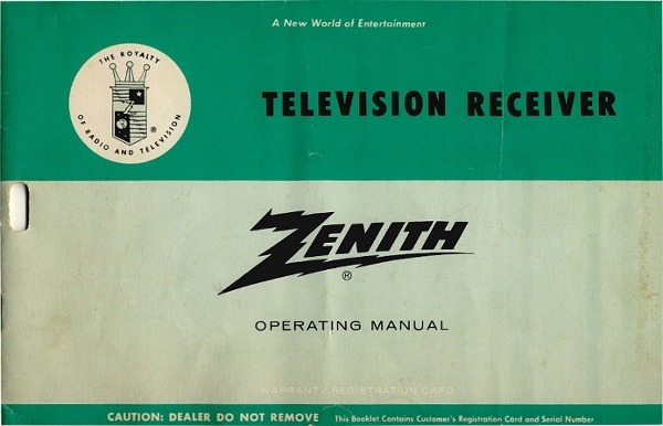 Your new Zenith television receiver is engineered for dependable long life service but like any mechanical or electrical instrument, it will occasionally require maintenance. For service consult your Zenith dealer or refer to the organization that installed your instrument. (See warranty.)