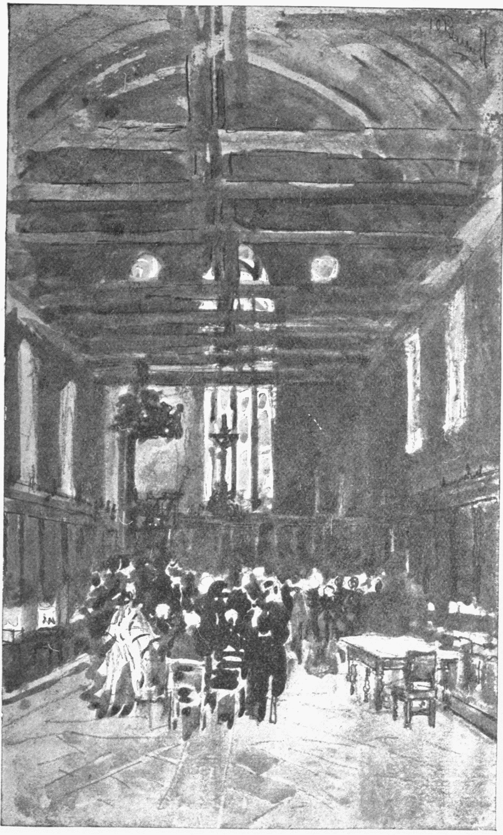 The ancient palace of the dukes of Burgundy, long since converted into an hôtel de ville, presents to a wide, clean court, paved with washed-looking stones, and to a small semicircular place, opposite, which looks as if it had tried to be symmetrical and had failed, a façade and two wings characterised by the stiffness, but not by the grand air, of the early part of the eighteenth century. It contains, however, a large and rich museum—a museum really worthy of a capital. The gem of this collection is the great banqueting hall of the old palace, one of the few features of the place that has not been essentially altered. Of great height, roofed with the old beams and cornices, it exhibits,[269]