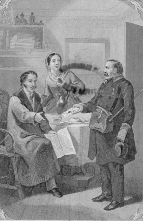 "Tässä on muutama taaleri, mies kultani", sanoi hän levollisesti. "Mutta ole hyvä ja sano minulle, millä maksan talousmaksut, kunnes saan lisää; sillä nämät ovat viimeiset rahamme."