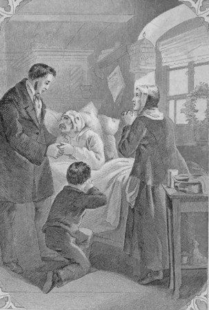 Äidin ja pojan hiljaa pidätetyt nyyhkytykset kuuluivat näiden kunnon miehen sanojen perästä ja kanslianeuvoskin tunsi, miten liikutuksen kyynel kostutti hänen silmäänsä. Pienessä huoneessa vallitsi kotvasen aikaa äänettömyys, syvä äänettömyys, jonka sairas hetken perästä keskeytti.