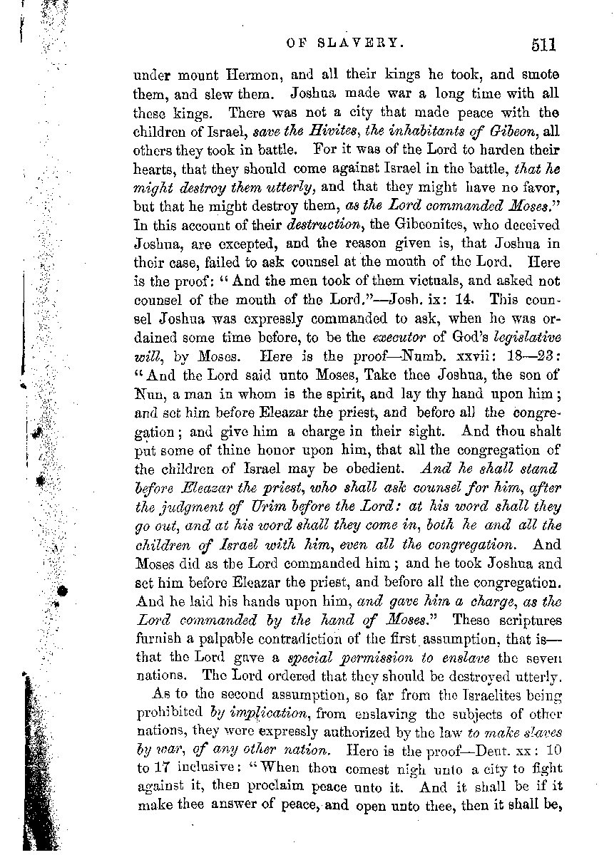 [268] On the manner in which slaves were acquired, compare Deut. xx: 14. xxi: 10, 11. Ex. xxii: 3. Neh. v: 4, 5. Gen. xiv: 14. xv: 3. xvii: 23. Num. xxxi: 18, 35. Deut. xxv: 44, 46.