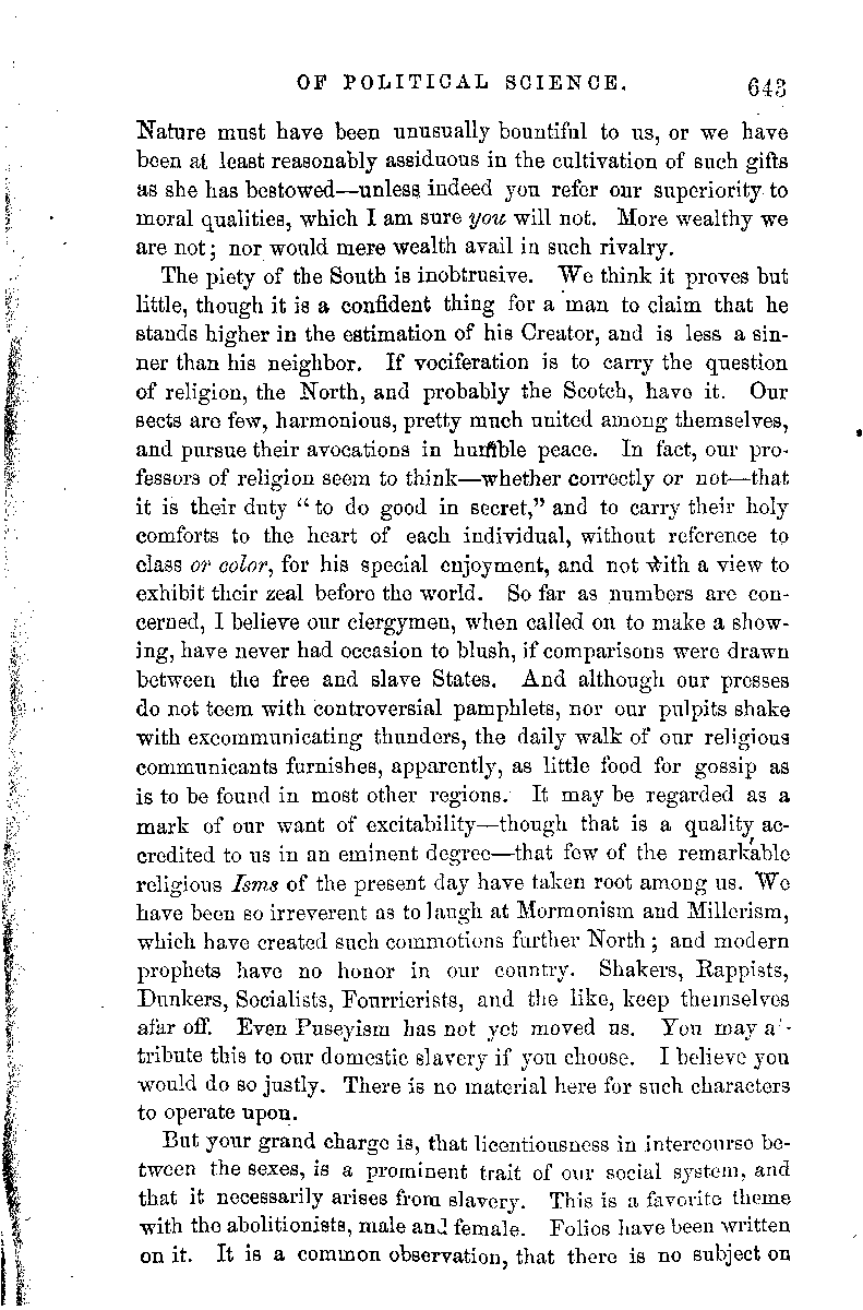 Another alleges that the book is "a weak effort to slander the people of color." This is a charge that could have come only from a careless reader. The whole testimony, embraced in the first edition, nearly, as to the economical failure of West India Emancipation, and the moral degradation of the free colored people, generally, is quoted from abolition authorities, as is expressly stated; not to slander the people of color, but to show them what the world is to think of them, on the testimony of their particular friends and self-constituted guardians.