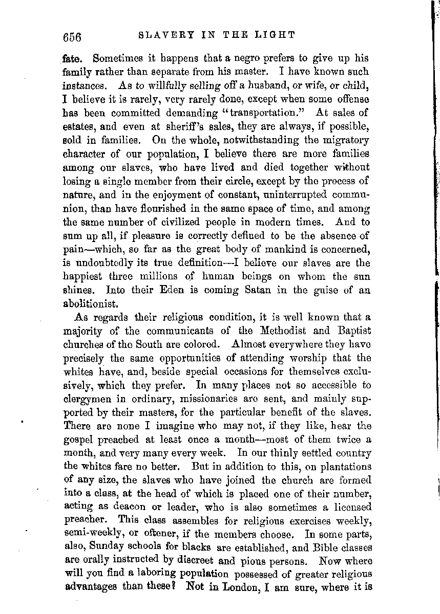 It is objected to the defenders of American slavery, that they have changed their ground; that from being apologists for it as an inevitable evil, they have become its defenders as a social and political good, morally right, and sanctioned by the Bible and by God himself. This charge is unjust, as by reference to a few historical facts will abundantly appear. The present slave States had little or no agency in the first introduction of Africans into this country; this was achieved by the Northern commercial States and by Great Britain. Wherever the climate suited the negro constitution, slavery was profitable and flourished; where the climate was unsuitable, slavery was unprofitable, and died out. Most of the slaves in the Northern States were sent southward to a more congenial clime. Upon the introduction into Congress of the first abolition discussions, by John Quincy Adams, and Joshua Giddings, Southern men altogether refused to engage in the debate, or even to receive petitions on the subject. They averred that no good could grow out of it, but only unmitigated evil.
