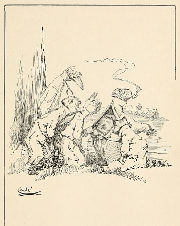 Then Mr. 'Coon and Mr. Crow both together said, "Oh, we never could do that—never in the world!" and Mr. Dog didn't say anything at all—not at first—but sat thinking. Then by and by he said, all at once: