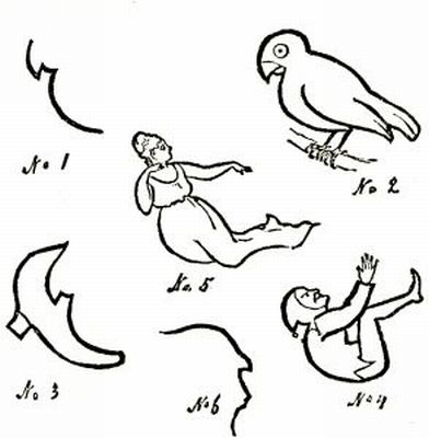Bob had made a parrot out of his "wiggle," papa a graceful floating figure, Mamie a high-heeled shoe, and I a fool with cap and bells.