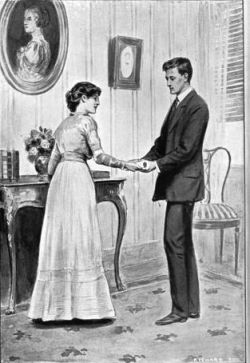 Then the head of the family went off to find Mary and tell her the joyful news, and Francis and Lily stood under the dark cedar-boughs together hand in hand. She was too happy to know exactly what he was saying; she only knew that she had managed to say what was required of her, and that life had suddenly changed from gloom to glory.