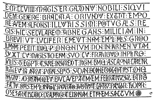 Thomar, igreja de Christo, junto á Charola. Caracteres rom. maiusc. Grande lapide.