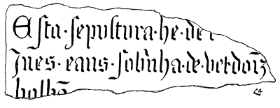 --Esta sepultura é de dona (?) Ignez Eannes, sobrinha de Vicente Domingues Bolhão.