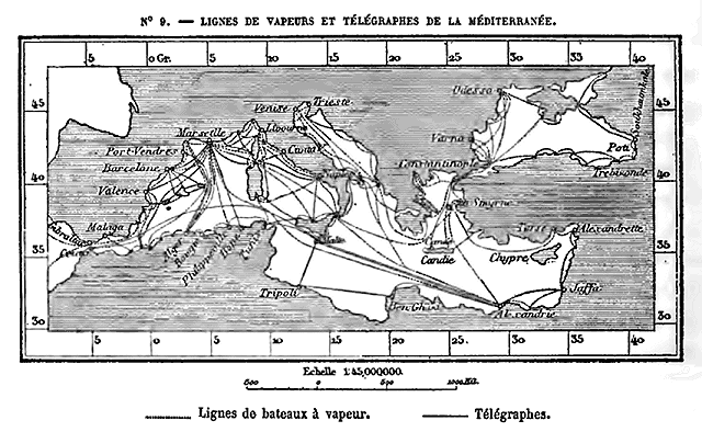 Ainsi, pendant le cours de l'histoire, se déplacent au bord des mers et sur la face des continents les grands lieux de rendez-vous, que l'on pourrait appeler les points vitaux de la planète. Port-Saïd, ville improvisée sur une plage déserte, est devenue l'une de ces localités vers lesquelles se porte le mouvement des hommes et des marchandises de toute espèce, tandis que, non loin de là, sur la côte de Syrie, les anciennes cités reines de Tyr et de Sidon ne sont plus que de misérables villages où l'on cherche vainement les restes d'un orgueilleux passé. De même a péri Carthage, de même a décliné Venise. Les atterrissements du littoral, l'emploi de navires beaucoup plus grands que ceux des anciens, les changements politiques de toute espèce, la perte de la liberté, les destructions violentes ont supprimé maint point vital des rivages de la Méditerranée; mais presque partout le port détruit s'est rouvert dans le voisinage ou bien plusieurs havres secondaires en ont pris la place. La plupart des grandes voies commerciales ont gardé leur direction première, et c'est dans les mêmes parages que se trouvent leurs points d'attache et leurs escales.
