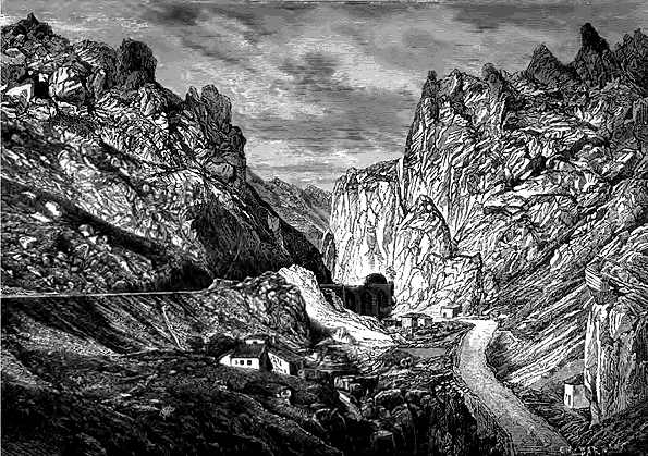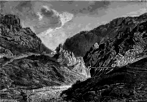 LXII.--Gorges de Pancorbo. (Dessin de F. Sorrieu, d'après une photographie de M.J. Laurent.)