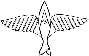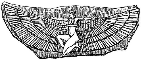 Dans la Salle des dieux, au musée égyptien du Louvre, il existe une petite plaque de bronze d'une haute antiquité, où l'on voit en relief un homme volant les deux ailes étendues (fig. 1). Il est vrai que l'on s'accorde à considérer cette pièce comme une composition symbolique plutôt que comme la représentation d'un appareil d'aviation.