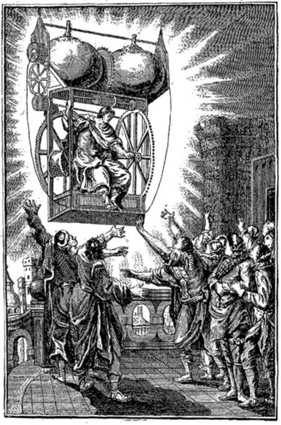 Au treizième siècle, le moine anglais Roger Bacon a affirmé, dans son livre: De mirabili potestate artis et naturæ, que l'homme pourrait un jour voler dans l'atmosphère; mais il ne donne aucune indication sur un mécanisme quelconque, et il se contente d'une simple prophétie: