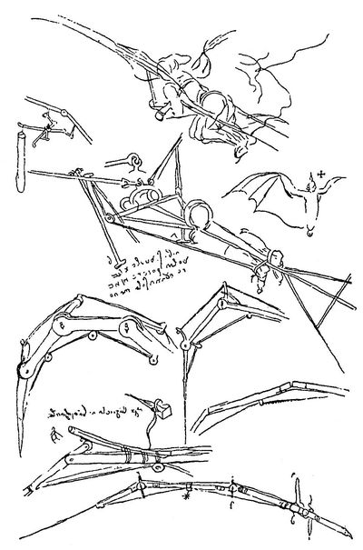 Léonard de Vinci avait abordé le problème en suivant cette même méthode rationnelle qu'on retrouve dans tous ses écrits, et qui le distingue de ses contemporains. Avant d'arriver à la construction de ses appareils d'aviation, il commença par l'observation et l'étude du vol des oiseaux.