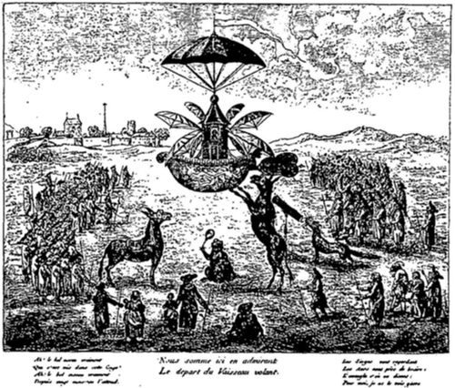 On se rappelle le fameux tapis enchanté et le cheval de bronze des Mille et une nuits. On connaît aussi les récits de Cyrano de Bergerac et les aventures de son héros dans le Voyage à la Lune[7].