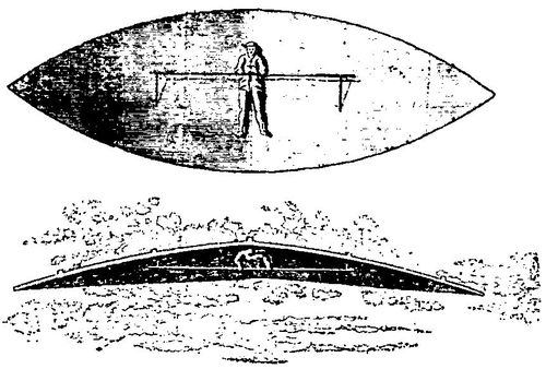 Il fut question en 1678 d'un appareil volant construit par un nommé Besnier. Les aviateurs ont souvent mentionné ce fait; j'ai pu me procurer encore le document original où il est signalé. C'est le Journal des sçavans du 12 décembre 1678; voici in extenso ce qui est dit de l'expérience de Besnier avec la reproduction de la figure (fig. 2).