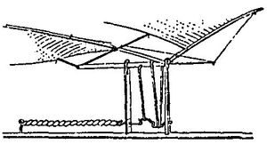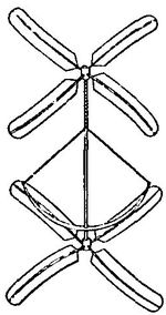 Cette machine consiste en deux bastons qui ont à chaque bout un châssis oblong de taffetas, lequel châssis se plie de haut en bas comme des battants de volets brisés.