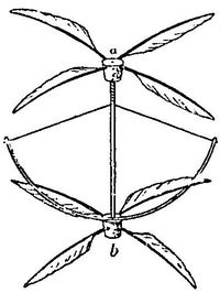 »IIe. Trovo se questo strumento fatto a vite sarà ben fatto, cioè fatto di tela lina stoppata i suoi pori con amido, e voltato con prestezza; che detta vite si fà la femmina nell' aria, e monterà in alto. Piglia lo esemplo da una riga larga e sottile e menata con furia in fra l' aria; vedrai essere guidato il tuo braccio per la linea del taglio della detta asse.