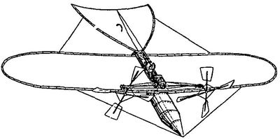 Note 49: Nous avons emprunté le dessin de cet aéroplane et de quelques-uns de ceux que nous venons de mentionner au Tableau d'aviation, dressé par M. E. Dieuaide, un de nos plus zélés historiens de la navigation aérienne.[Retour au texte principal]