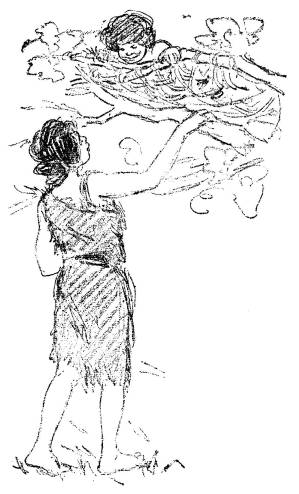 She knew that no wild animal, however fierce and hungry, would dare come near the leaping flames. Yet watchful as she was, she did not see two children who were creeping stealthily toward her, over the great rocks which sheltered the mouth of the cave.