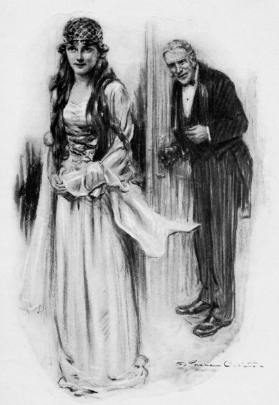 “Where are you going?” he asked, as she slipped away from him and stood poised in the doorway.