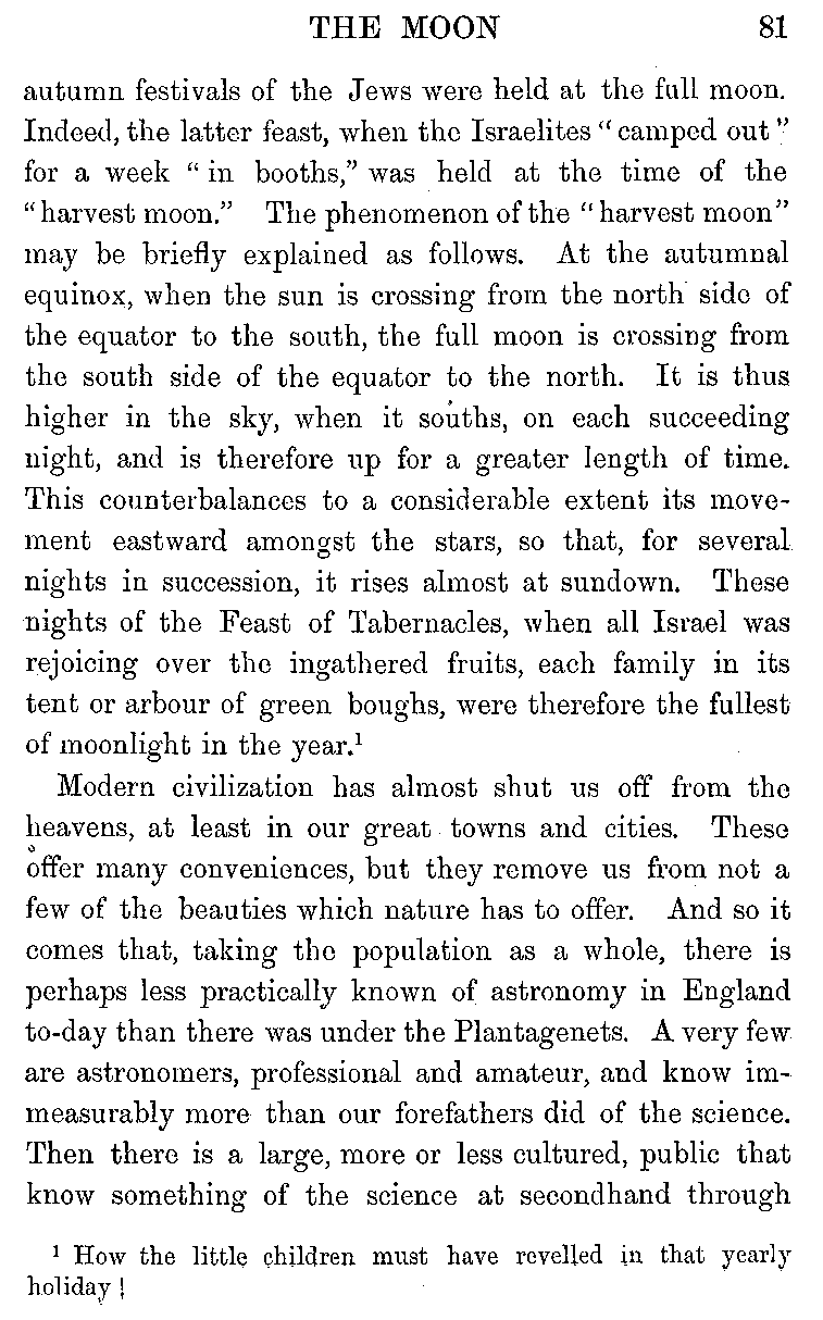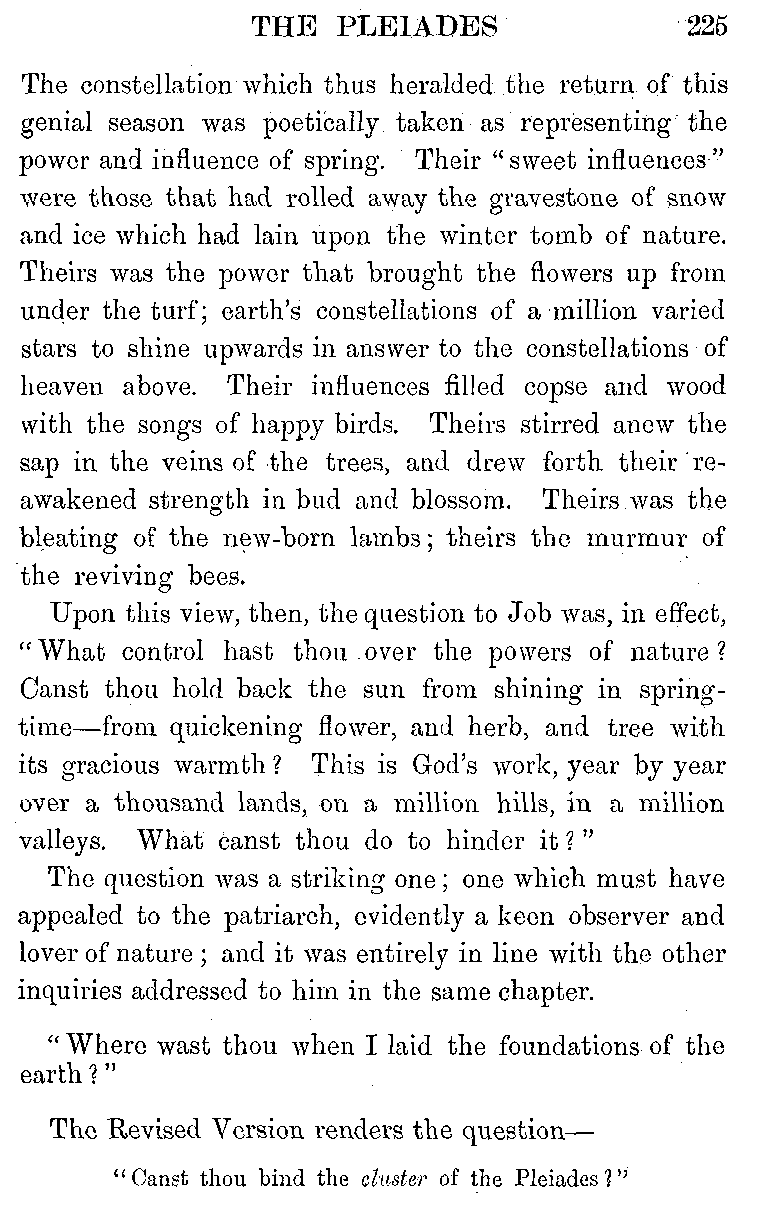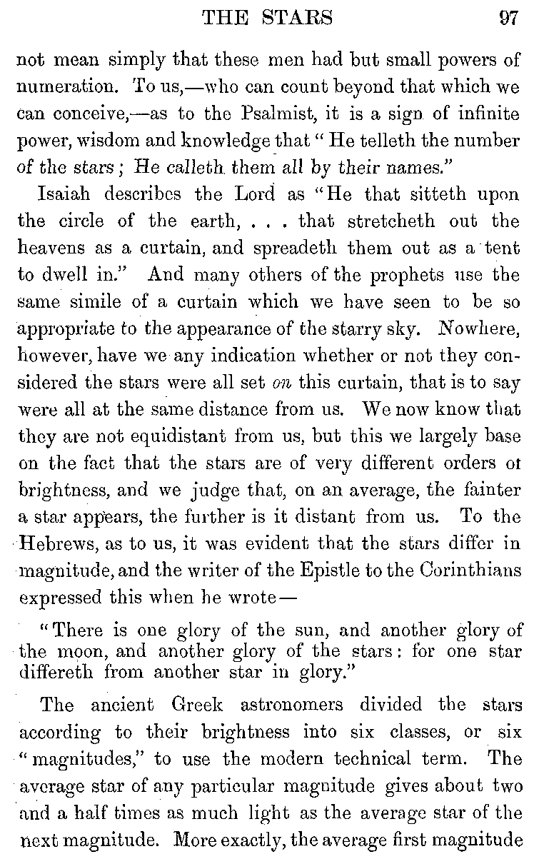 Astronomical allusions in the Bible, direct and indirect, are not few in number, and, in order to bring out their full significance, need to be treated astronomically. Astronomy further gives us the power of placing ourselves to some degree in the position of the patriarchs and prophets of old. We know that the same sun and moon, stars and planets, shine upon us as shone upon Abraham and Moses, David and Isaiah. We can, if we will, see the unchanging heavens with their eyes, and understand their attitude towards them.