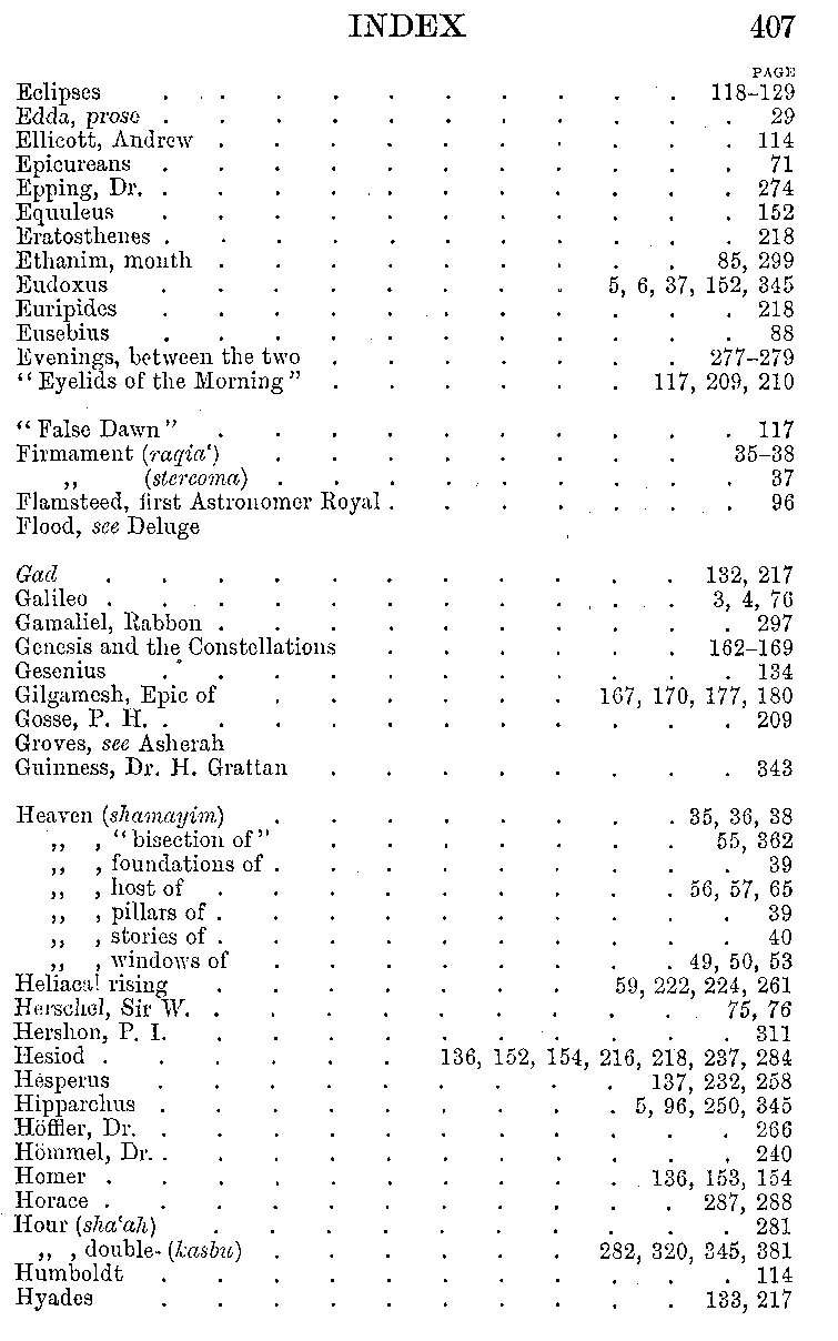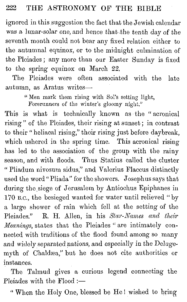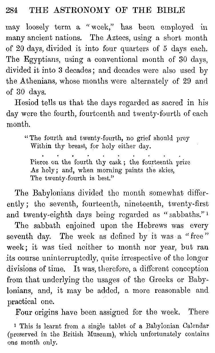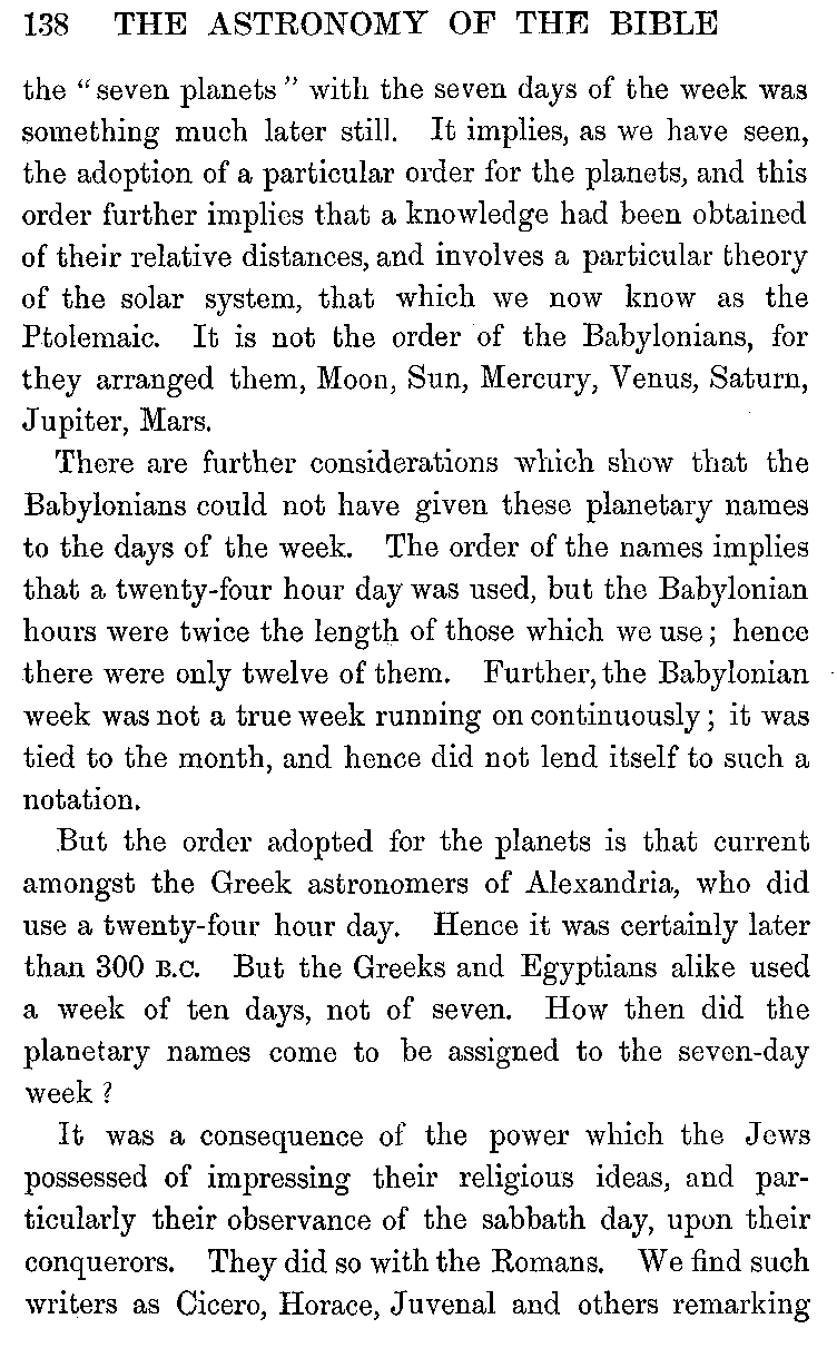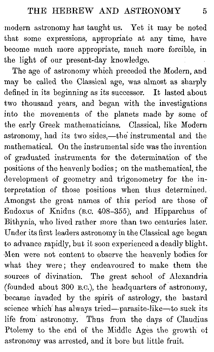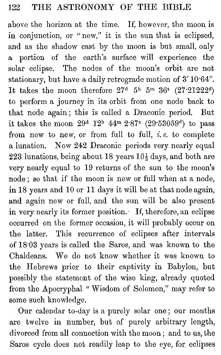 Astronomy has a yet further part to play in Biblical study. The dating of the several books of the Bible, and the relation of certain heathen mythologies to the Scripture narratives of the world's earliest ages, have received much attention of late years. Literary analysis has thrown much light on these subjects, but hitherto any evidence that astronomy could give has been almost wholly neglected; although, from the nature of the case, such evidence, so far as it is available, must be most decisive and exact.