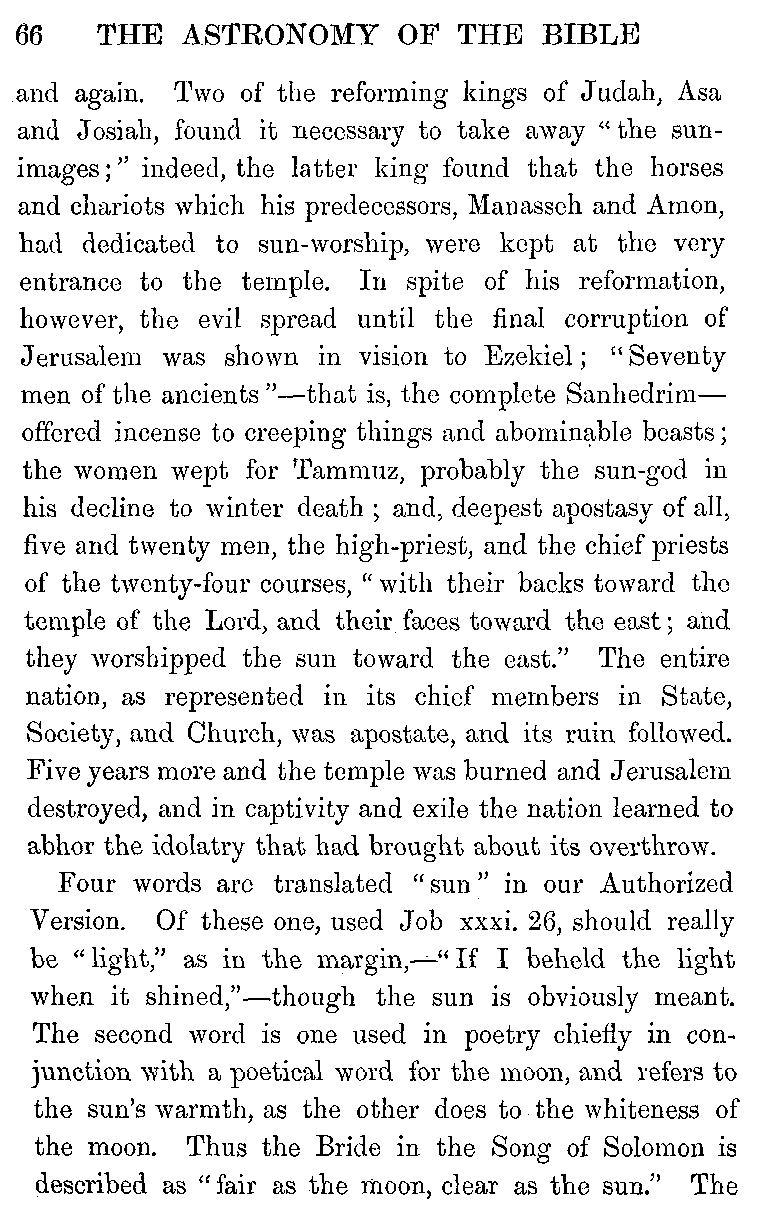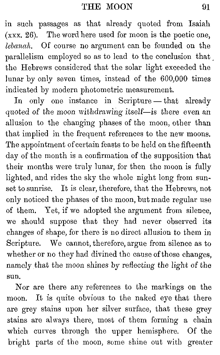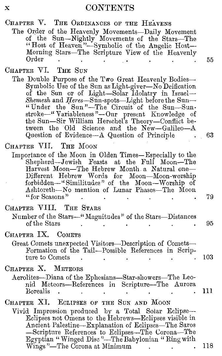 It is worth while for us so to do. For the immense advances in science, made since the Canon of Holy Scripture was closed, and especially during the last three hundred years, may enable us to realize the significance of a most remarkable fact. Even in those early ages, [viii]when to all the nations surrounding Israel the heavenly bodies were objects for divination or idolatry, the attitude of the sacred writers toward them was perfect in its sanity and truth.